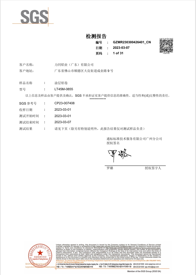 力同氟碳铝卷采用目前耐候性最好的PVDF氟碳涂料,太阳光中的紫外线只有极少比例的光子可以破坏掉氟碳分子。经实验室数据证明,力同氟碳铝卷经过4000小时QUV加速老化测试,铝板表面颜色依然如新,纹路清晰。在户外暴晒环境里,不用担心,彻底告别“褪色焦虑”。
